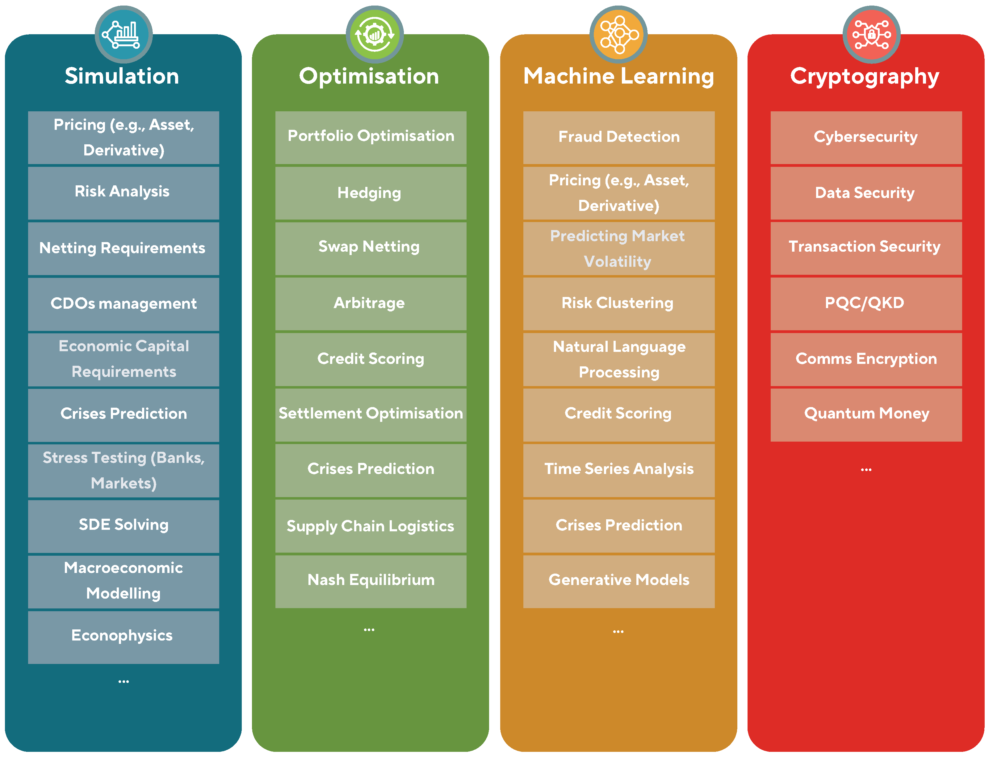 - Banking and Investment—presented in Section 3.1, we identify some of the computational bottlenecks for classical methods in banking and investment problems and use cases where quantum computing can potentially have an advantage. These include pricing assets and derivatives, portfolio optimisation, hedging, and arbitrage.