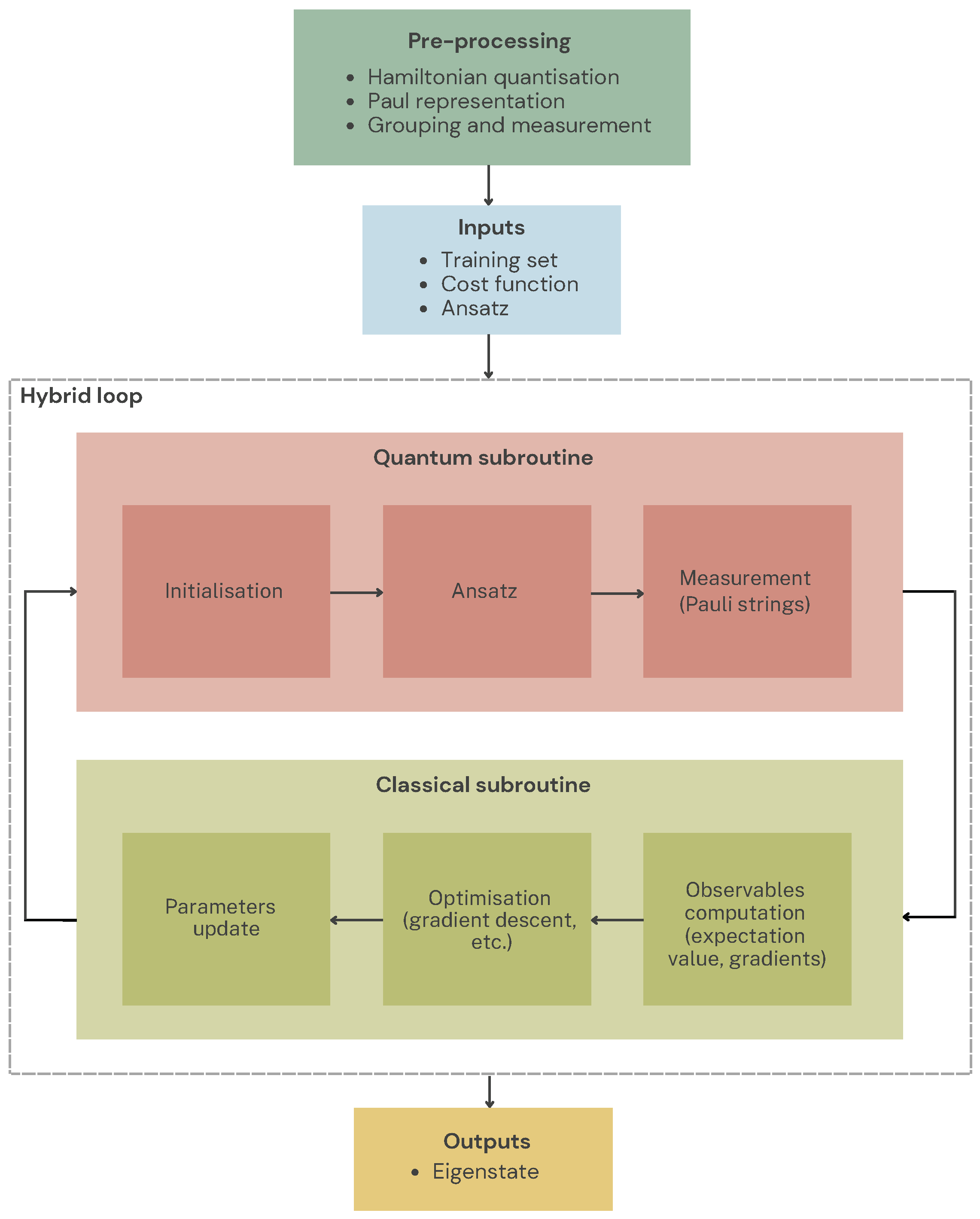 - Quantum Machine Learning algorithms are presented in Section 2.4, which are quantum extensions of classical Machine Learning techniques for supervised, unsupervised, and reinforcement learning.