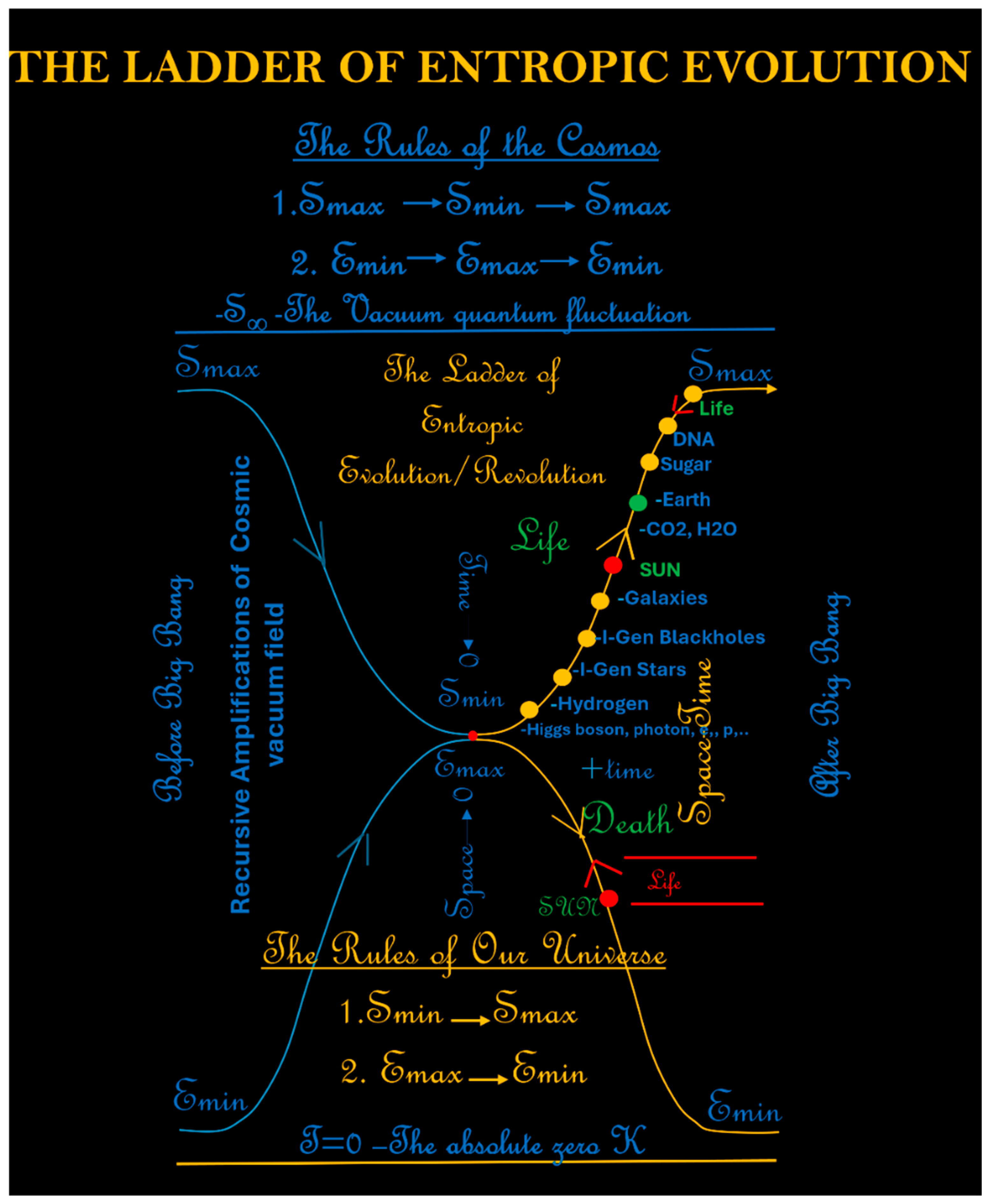 - Solomon, J.T. Why Life? Why God? The Ladder of Entropic Evolution: A Unified S-Theory for Entropy, Energy, Matter, Life, Intelligence and AI; Amazon Publishing: Seattle, WA, USA, 2025; ISBN 979-8290360751. [Google Scholar]