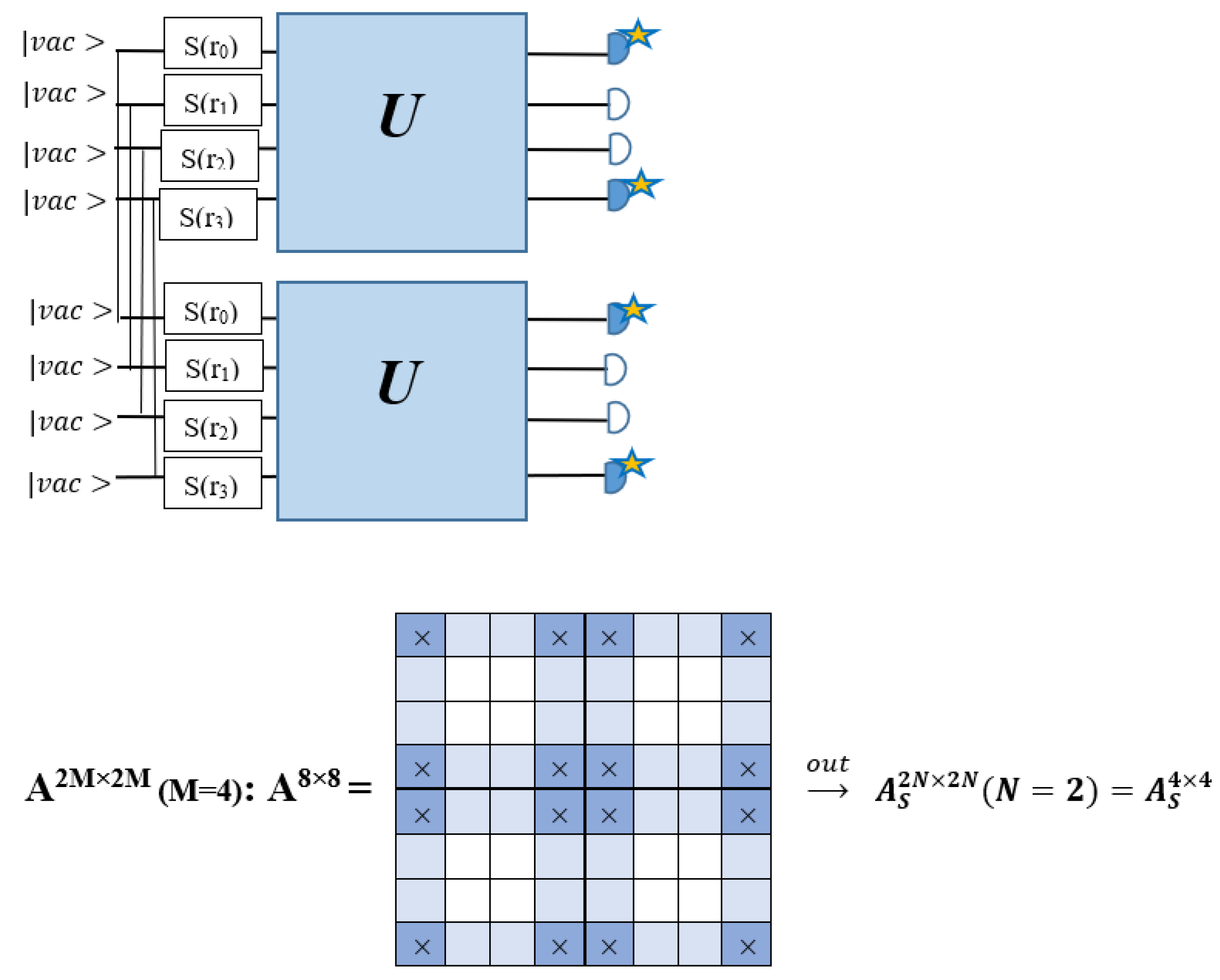 2.4. The Conception of Bipartite Gaussian Boson Sampling