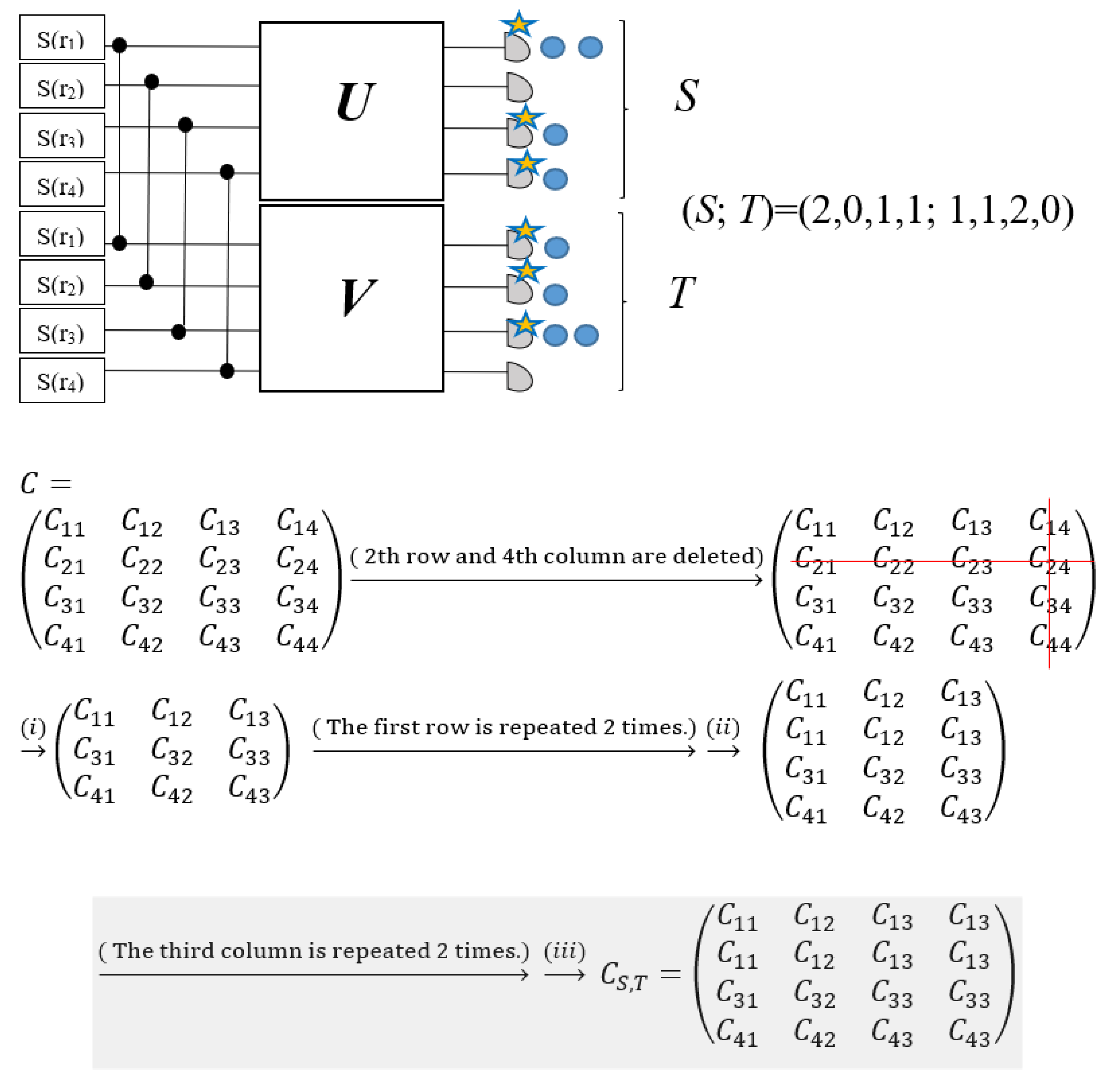 - Determination of the unitary interferometer matrix U and the values via the computation of the Takagi–Autonne decomposition of B.