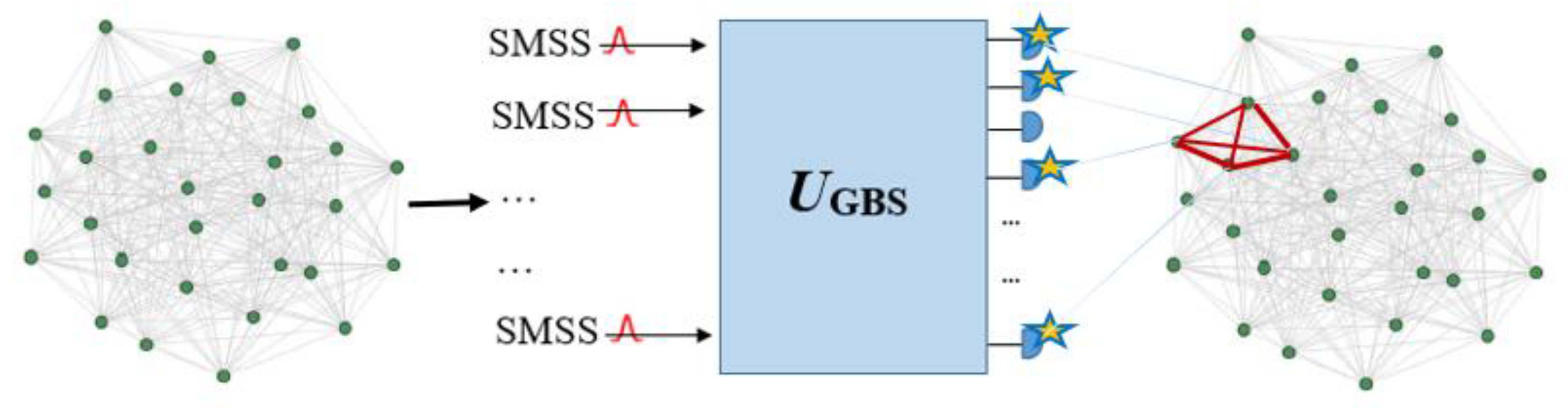 3.2. How to Encode Graphs into the GBS Device to Find a Dense Subgraph