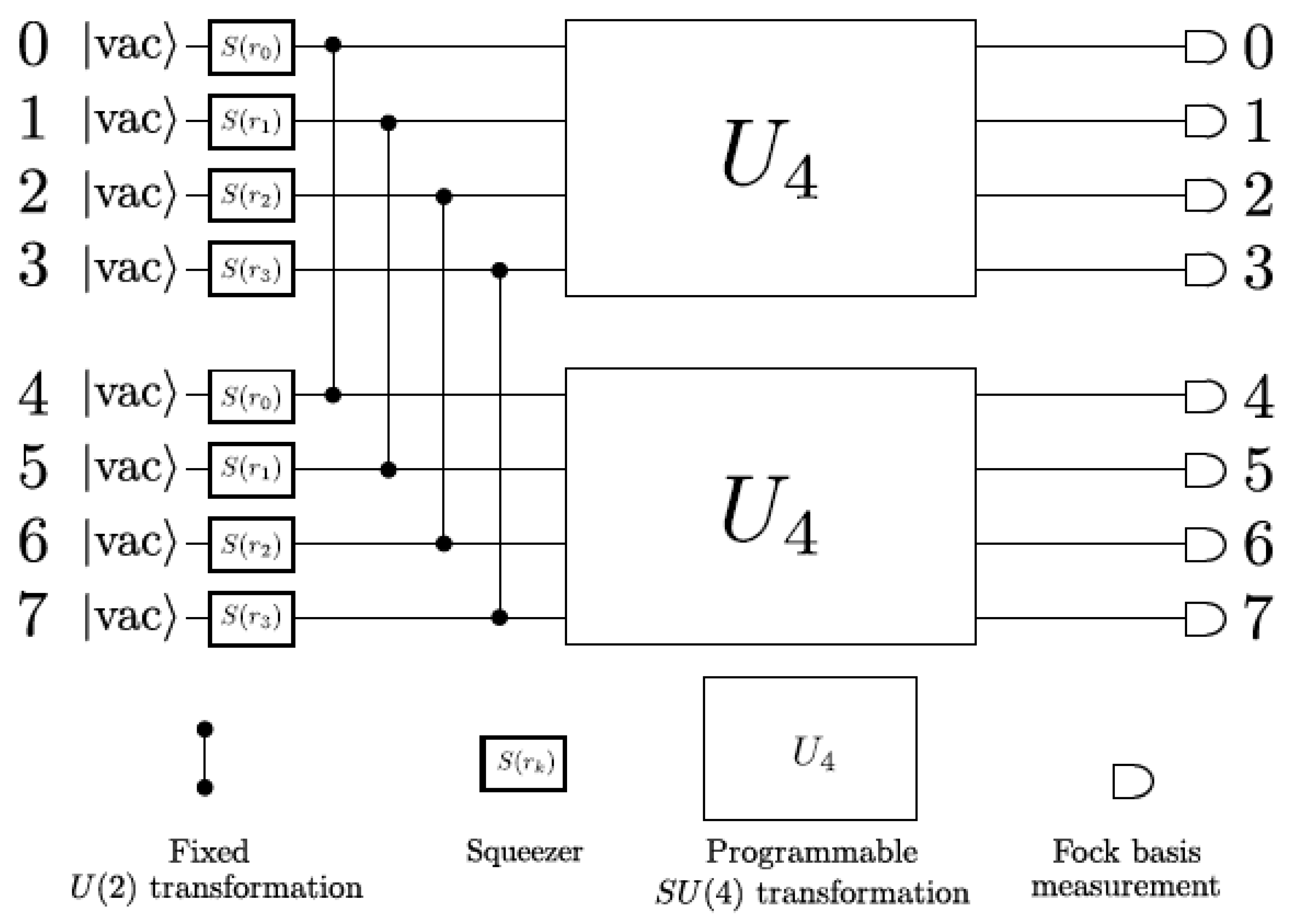 - Executing Programs on X8 Devices. Available online: https://strawberryfields.ai/photonics/demos/tutorial_X8.html (accessed on 26 November 2025).