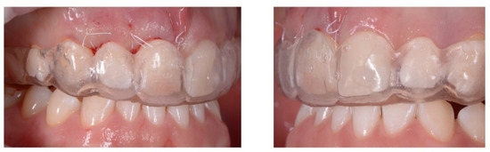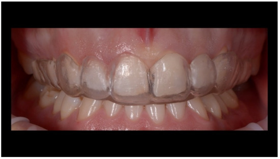 The first step of the treatment plan is the diagnosis, including a full arch optical impression (Trios 3Shape®, 3Shape A/S, Copenhagen K, Denmark), the evaluation of the intermaxillary relationships, photos, full mouth X-rays, and PSR (Periodontal Screening Recording). Based on these indications, the dental technician performed a diagnostic wax-up with a CAD-CAM system (Exocad®, exocad America, Inc., Darmstadt, Germany).