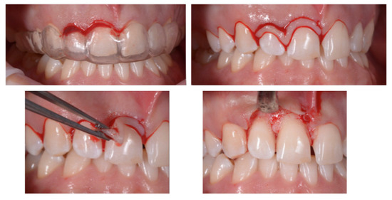 Paramarginal incision guided by the template resulting from the diagnostic wax-up.