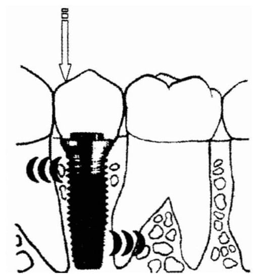 In fact, not all stimuli are equally favorable and not all determine a new bone apposition; some authors say that, in overload situations, peri-implant bone resorption can be triggered with a consequent loss of ankylosis and the formation of fibrous connective tissue between the implant and bone [,].