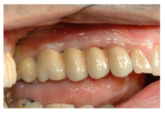 - Scrascia, R.; Fiorillo, L.; Gaita, V.; Secondo, L.; Nicita, F.; Cervino, G. Implant-Supported Prosthesis for Edentulous Patient Rehabilitation. From Temporary Prosthesis to Definitive with a New Protocol: A Single Case Report. Prosthesis 2020, 2, 10–24. [Google Scholar] [CrossRef]