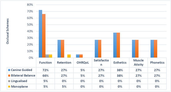 - Jaafar Abduo, B.; DclinDent, M. Occlusal schemes for complete dentures: A systematic review. Int. J. Prosthodont. 2013, 26, 26–33. [Google Scholar] [CrossRef]