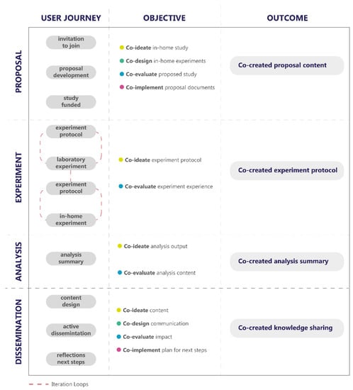 The scenario presented above illustrates a transition in defining user involvement within research from participants to co-researchers. Such an approach comes with risks, for example, the blurring of the boundaries between research and everyday life could have a negative impact on users. Ethical considerations can therefore become more complex, for example, ensuring that meaningful, informed consent is obtained throughout the study [44]. In addition, the design of blinded experiments in collaboration with users is a pertinent consideration, such that biases are addressed. A key principle to be addressed and re-visited throughout the duration of a co-creation study is power sharing, which identifies research as jointly owned through neutral understanding [45]. Adopting an approach that involves users as core stakeholders will be challenging [37]. However, resources are available to assist the exploration of ethical considerations in collaboration with stakeholders throughout the course of a study, such as The Ethical Roadmap [46]. Furthermore, existing examples demonstrate that including users can lead to capturing new knowledge and experience that is vital in conducting meaningful, impactful research [47]. Therefore, it is timely to establish how co-creation can successfully work in practice.