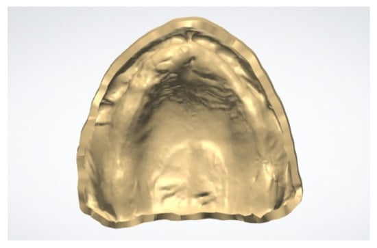 The clinical protocols for digitizing the tissue surface of a denture are still evolving and are highly dependent on the used system. Nevertheless, there are two options in general. One would be to directly scan the supporting tissues utilizing an intraoral scanner and the other to indirectly scan a stone cast, or even the impression, utilizing a laboratory desktop scanner or an intraoral scanner. Intraoral scanning shows some advantages compared with conventional impressions, such as improvement of patients’ comfort (no gag reflexes, reduced chairside time, fewer appointments) and facilitation of laboratory procedures (cast preparation, handling and shipping) without the need of physical casts [19,20,21]. Moreover, intraoral scans have been reported to be dimensionally accurate for CD fabrication [22,23]. In the absence of an intraoral scanner, scanning of physical casts or impressions is necessary.