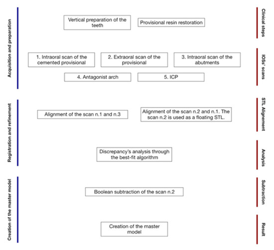 - Mandelli, F.; Ferrini, F.; Gastaldi, G.; Gherlone, E.; Ferrari, M. Improvement of a Digital Impression with Conventional Materials: Overcoming Intraoral Scanner Limitations. Int. J. Prosthodont. 2017, 4, 373–376. [Google Scholar] [CrossRef] [PubMed] [Green Version]