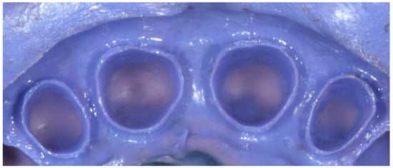 The possibility of deciding the position of the prosthetic margin after soft tissue healing and maturation guarantees an excellent esthetic since the crown margin is always placed in the sulcus. Typically, subgingival clinical precision checks are difficult to perform, and the correctness of margin adaptation on the preparation finishing line is not always evident. With VEP, thanks to the presence of a prosthetically usable area, the margin closure on the abutment is far more predictable; as with all the vertical preparation techniques, VEP guarantees a better marginal closure of the prosthetic crown, particularly after cementation [,]. Furthermore, the creation of an undercontour is virtually impossible.