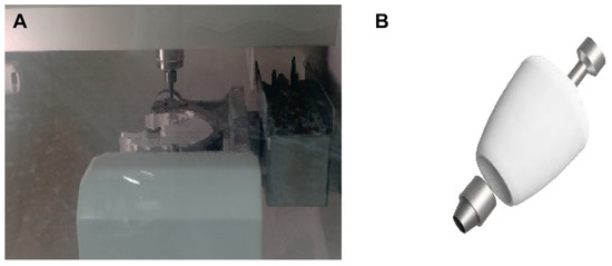 (A) Milling procedure of final prosthesis, (B) Connection of link and zirconia crown.