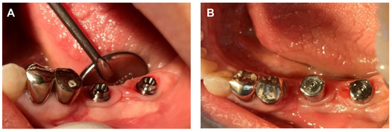 (A) Multi-abutment connection, (B) Healing cap connection.
