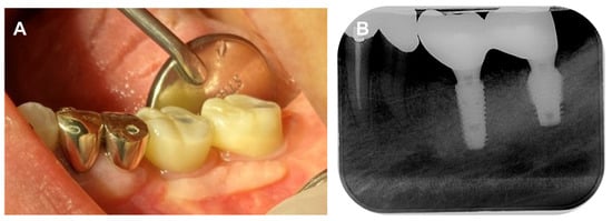 - Wilson, T.G., Jr. The positive relationship between excess cement and peri-implant disease: A prospective clinical endoscopic study. J. Periodontol. 2009, 80, 1388–1392. [Google Scholar] [CrossRef] [PubMed]