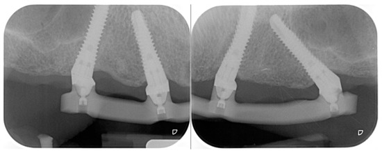 The bar was produced by a milling center (New Anchorvis SRL; Calderara di Reno (BO), Italy) from a chromium–cobalt disk and was therefore equipped with screwed ball attachments (Rhein 83 srl; Bologna, Italy) (Figure 10).