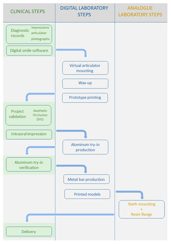 - Ortensi, L.; Ortensi, M.; Minghelli, A.; Grande, F. Implant-Supported Prosthetic Therapy of an Edentulous Patient: Clinical and Technical Aspects. Prosthesis 2020, 2, 140–152. [Google Scholar] [CrossRef]