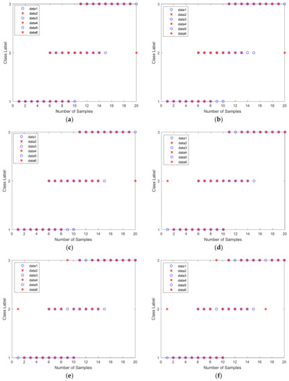 Testing sets were collected for 10 samples in each class. Figure 9a,c,d shows that three samples were not classified correctly into true (targeted) class. Meanwhile, Figure 9e shows four samples that were misclassified into another class, and in Figure 9b,f, five samples were not classified correctly into true (target) class. This regression plot is a visualization of the overall accuracy presented in Table 5