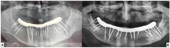 (A) Ortopantomography acquired in 2018. (B) Ortopantomography acquired in July 2021.