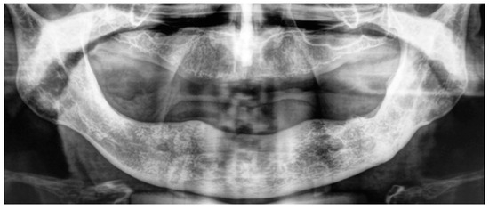 Orthopantomography acquired six months from the initial surgery (March 2022).