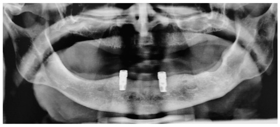 - Yamamoto, S.; Maeda, K.; Kouchi, I.; Hirai, Y.; Taniike, N.; Yamashita, D.; Imai, Y.; Takenobu, T. Development of Antiresorptive Agent-Related Osteonecrosis of the Jaw After Dental Implant Removal: A Case Report. J. Oral. Implantol. 2018, 44, 359–364. [Google Scholar] [CrossRef]