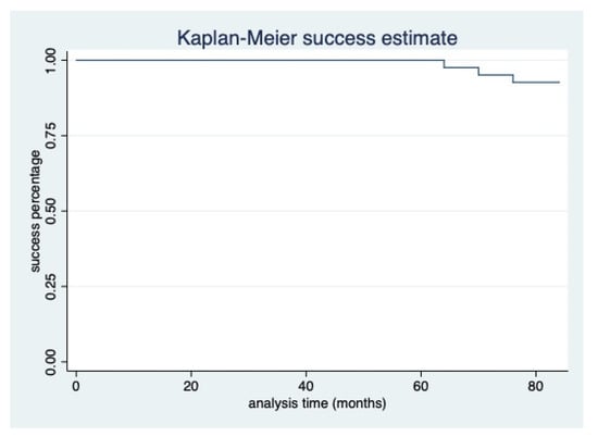 The cumulative survival rate was 100%, and the success rate was 87.8% (Figure 3).