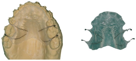 The manufacturing process of this device for children with VPD is challenging as they are going through a period of facial growth with changes in dentition as a result of orthodontic treatment and/or alveolar bone graft surgery [24,25,26]. Despite the known evidence on the use of the pharyngeal bulb to reduce hypernasality and improve speech intelligibility, the current design of these devices does not allow its application in patients with fixed orthodontic appliances. The pharyngeal obturator prosthesis designs vary according to the nature and location of the velopharyngeal insufficiency. Typically, the pharyngeal prosthesis is composed of three parts: the anterior region, similar to an acrylic plate retained by Adams hooks; the intermediate region that connects the anterior part to the bulb; and the individualized pharyngeal bulb to promote the functional competence of the VPM. Other retention mechanisms have been suggested such as a removable partial denture, complete denture, or overdenture [27,28]. However, in partial or total edentulous patients, the weight and length of the bulb portion can produce a rotation around the fulcrum line due to gravitational forces or the inability to obtain a border seal [29,30]. Additionally, the majority of CLP patients require orthodontic treatment that begins shortly after birth and may continue into adulthood, and it also can produce changes in speech and velopharyngeal function. A recent randomized clinical trial showed that the perception of speech was changed, regardless of the orthodontic appliances used [31]. Moreover, none of the reported designs allow the adjustment of retention methods to the constant tooth movement caused by orthodontic treatment, which causes the detachment of the obturator. Therefore, it is crucial to adapt the conventional pharyngeal bulb to be used concurrently with fixed appliances, in order to reduce hypernasality and improve speech intelligibility.