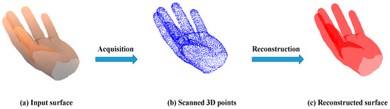 Currently, 3D scanners dedicated to human healthcare are available with satisfactory accuracy. The most common technologies used to scan human body parts are lasers and structured light scanning. The laser technique uses a projected laser point or line from a hand-held device. A sensor measures the distance to the surface, typically a charge-coupled device or a position-sensitive device. Structured light methods use a projector–camera system with predefined light patterns projected onto the human body part. Equally, 3D printers used in orthosis manufacturing have shown promising results [5,8]. Investigations have contributed to an acceptable mastery of the AM process, such as the selection of material and manufacturing parameters in [7]. Nevertheless, 3D reconstruction remains the weak link in the current 3D scan-based manufacturing process of orthoses, and the current approaches present several weaknesses, such as the inaccuracy and poor quality of the designed models. Thermoforming-based methods were proposed to avoid 3D data acquisition and 3D surface reconstruction [6,9]. The workflow includes the thermoforming of a printed device on the patient’s limb, yielding safety and implementation issues. Thus, this paper aims to overcome the drawbacks of traditional methods by improving the quality and efficiency of a custom orthotic design. In this regard, a robust surface reconstruction algorithm, using patient data acquired by 3D scanning, is developed.