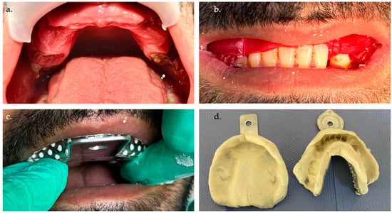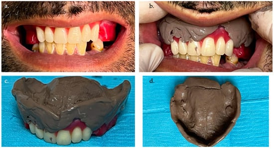 During the realization of dentures, the pre-clinician diagnostic phases are essential. Initially, a comprehensive oral examination is conducted to assess the patient’s systemic and oral health, including the condition of any remaining teeth, the health of the oral mucosa, and the anatomical features of the jaw and oral cavity. This could lead to instrumental examinations, like radiography, to evaluate the periodontal status of residual teeth. Carefully analyzing the soft and hard tissues to highlight anomalies, such as exostoses or mandibular tori, is essential. Subsequently, we can proceed with the joint evaluation of the patient, highlighting the presence of temporomandibular anomalies. To evaluate the peri-oral soft tissues, we must consider the high esthetic value of a removable prosthetic rehabilitation. The importance of a thorough diagnosis and analysis of temporomandibular disease (TMD) in patients before the realization of removable dentures cannot be overstated. Accurate assessment of the temporomandibular joint (TMJ) and its function is crucial because TMD can significantly impact the overall success and functionality of the dentures. Patients with undiagnosed or untreated TMD may experience increased discomfort and complications with their prosthesis due to the added strain on their compromised joint structures [6]. This can lead to improper fitting of the denture, increased wear and damage, and decreased patient satisfaction and quality of life. Only after assessing the patient’s psychological state and being sure of their acceptance of a removable rehabilitation will it be possible to proceed to the subsequent phases [6,7].