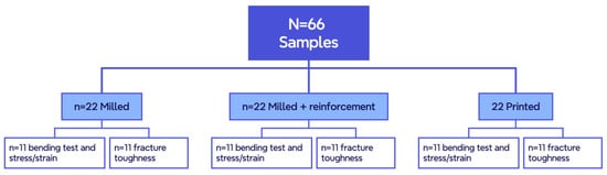 - Valenti, C.; Isabella Federici, M.; Masciotti, F.; Marinucci, L.; Xhimitiku, I.; Cianetti, S.; Pagano, S. Mechanical Properties of 3D-Printed Prosthetic Materials Compared with Milled and Conventional Processing: A Systematic Review and Meta-Analysis of in Vitro Studies. J. Prosthet. Dent. 2022. Online ahead of print. [Google Scholar] [CrossRef]