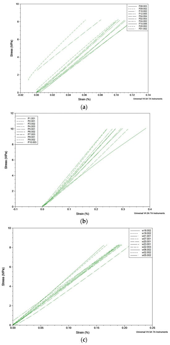 2.3. Deformation (Displacement) and Stress/Strain Curves within the Elastic Area