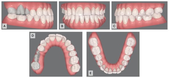 Three months later, the patient was scanned for Invisalign® treatment (Align Technology, Santa Clara, CA, USA) (Figure 9A–E).