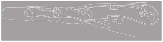 The drawings by Christian von Mechel served as the basis for the reconstruction [2]. To simplify the illustration, Mechel only indicated some of the internal components in various figures, but this is not instantly apparent and initially leads to confusion, as some of the drawings are imprecise and not every component is shown from every side. For this reason, a two-dimensional (2D) drawing was first made of the index finger at a scale of 1:1. In order to determine all of the required dimensions, von Mechel’s drawings were loaded into a drawing program, resized to the original size based on a few given dimensions, and used as a template to create digital copies of the drawings. Afterwards, this sketch served to give any relevant dimension needed for reconstruction (Figure 4).
