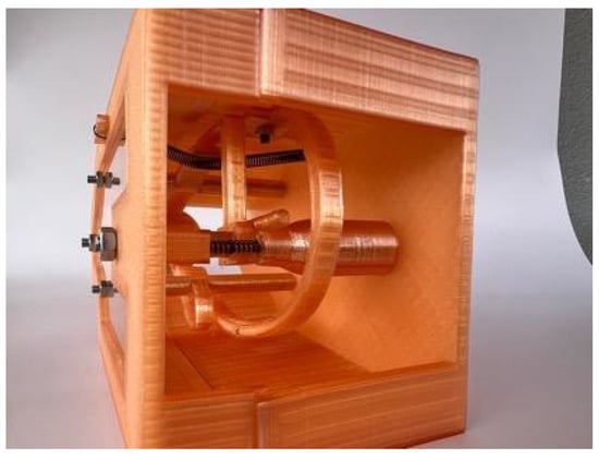 The first prototype was printed using two different materials: PETG (polyethylene terephthalate glycol-modified) and PLA (polylactic acid). To print mechanical components, PETG should be selected. Compared to PLA, it has higher temperature resistance, is tougher, and therefore less fragile. In addition, the thermal expansion of PETG is low; i.e., the material adheres well to the build plate and does not deform [4].