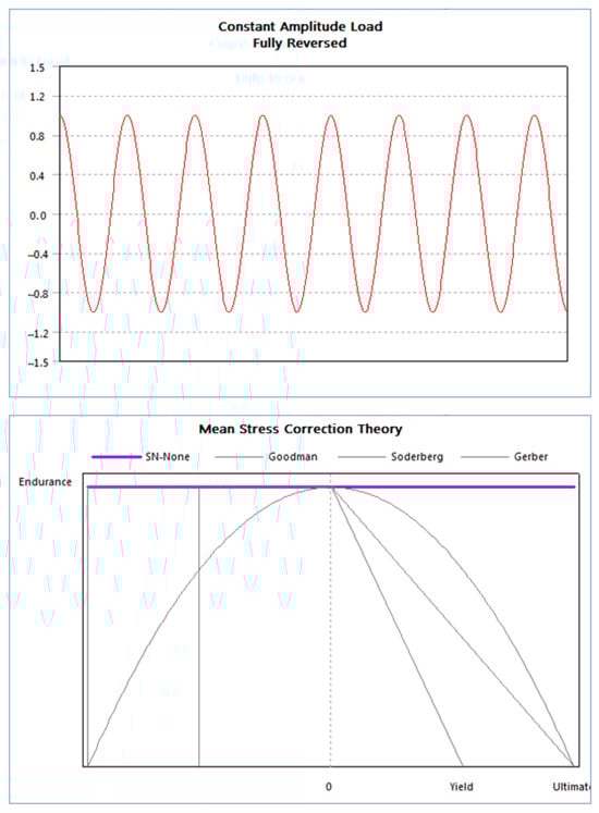 Fatigue analysis result: Showing constant amplitude load fully reversed and Mean stress correction theory.