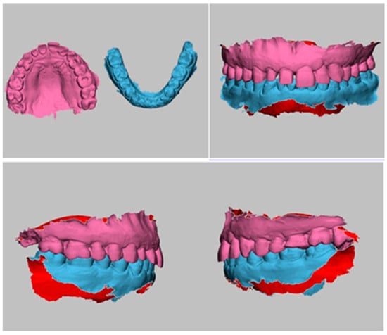 Subsequently, these 3D skull–jaw files were precisely overlapped and aligned with intraoral scan data based on identifiable dental landmarks, ensuring an accurate anatomical correlation (Figure 3).