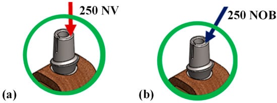 | 2. | CP Ti-55, implant with 3.8 mm abutment | 250 N Oblique |