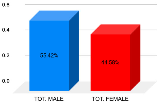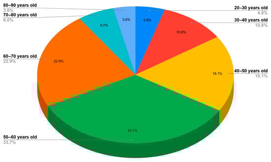 These 59 publications included 83 subjects, 46 male and 37 female (Figure 2), with ages ranging from 21 to 90 years, an average age of 54.59 years, and a standard deviation of 13.76 years (Figure 3). That is, 68.27% of the subjects were adults with ages ranging from 40.83 to 68.35 years.