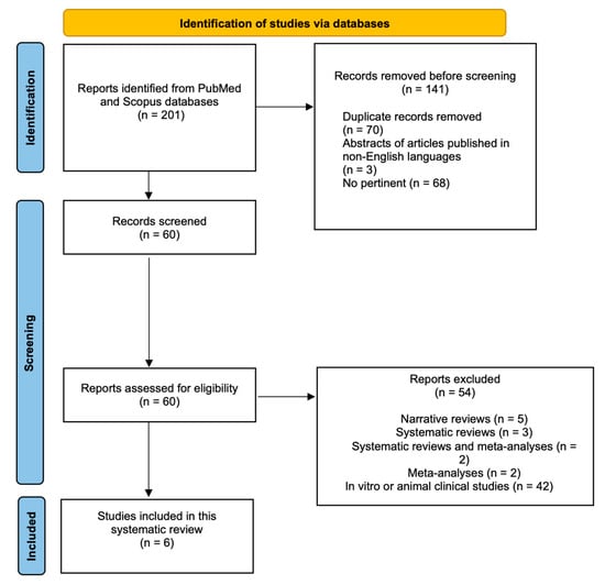 The PRISMA checklist was followed during the design and writing of this review, and the checklist used is included in the Supplementary Materials (Table S1).