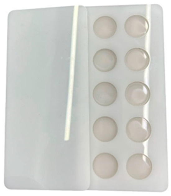Custom polypropylene plastic sheets were laser-cut to serve as molds for circular specimens.