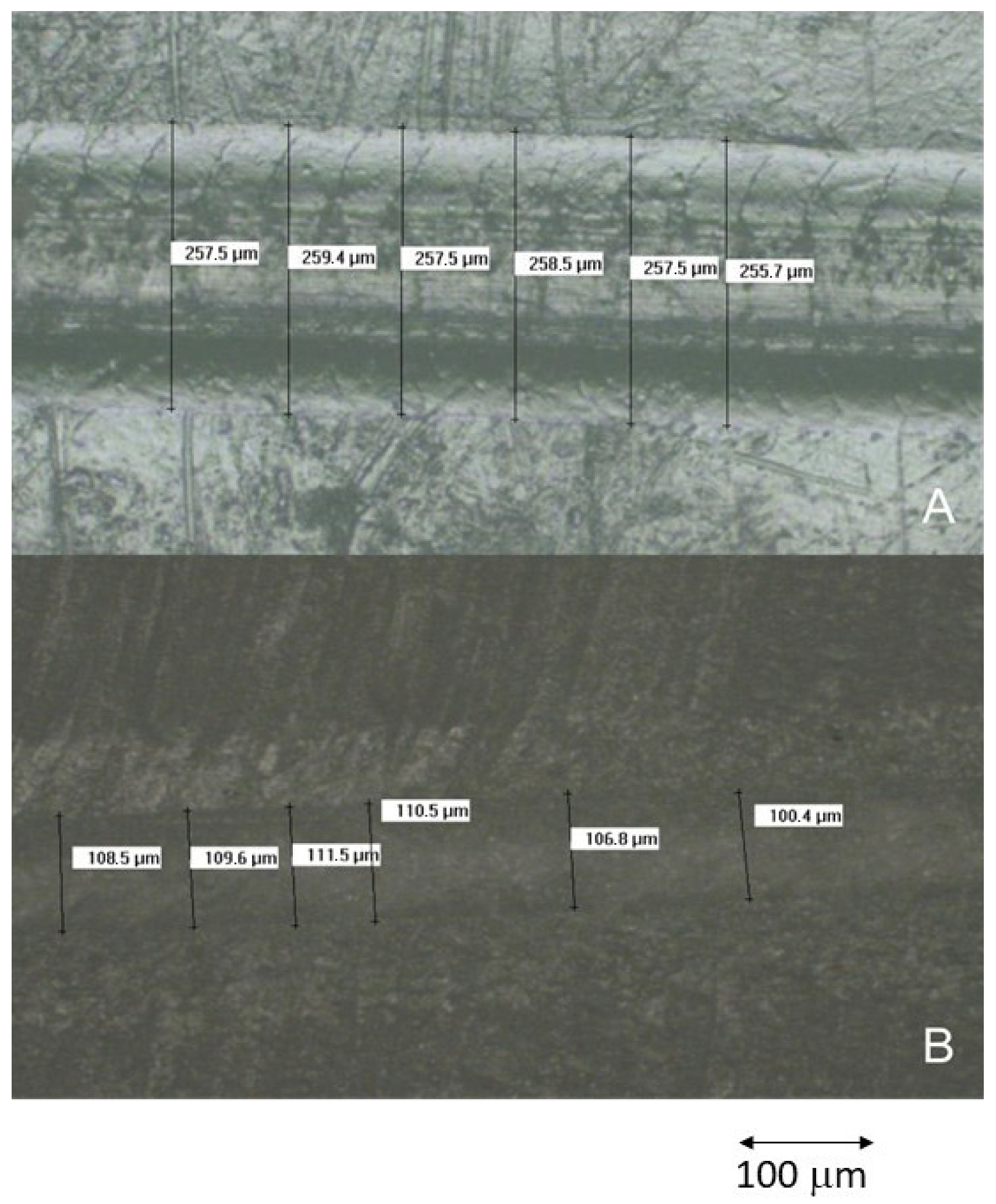 | Material | Scratch Channel Width (µm) | Friction Force (N) | Dynamic Friction Coef. | Penetration Depth (µm) |