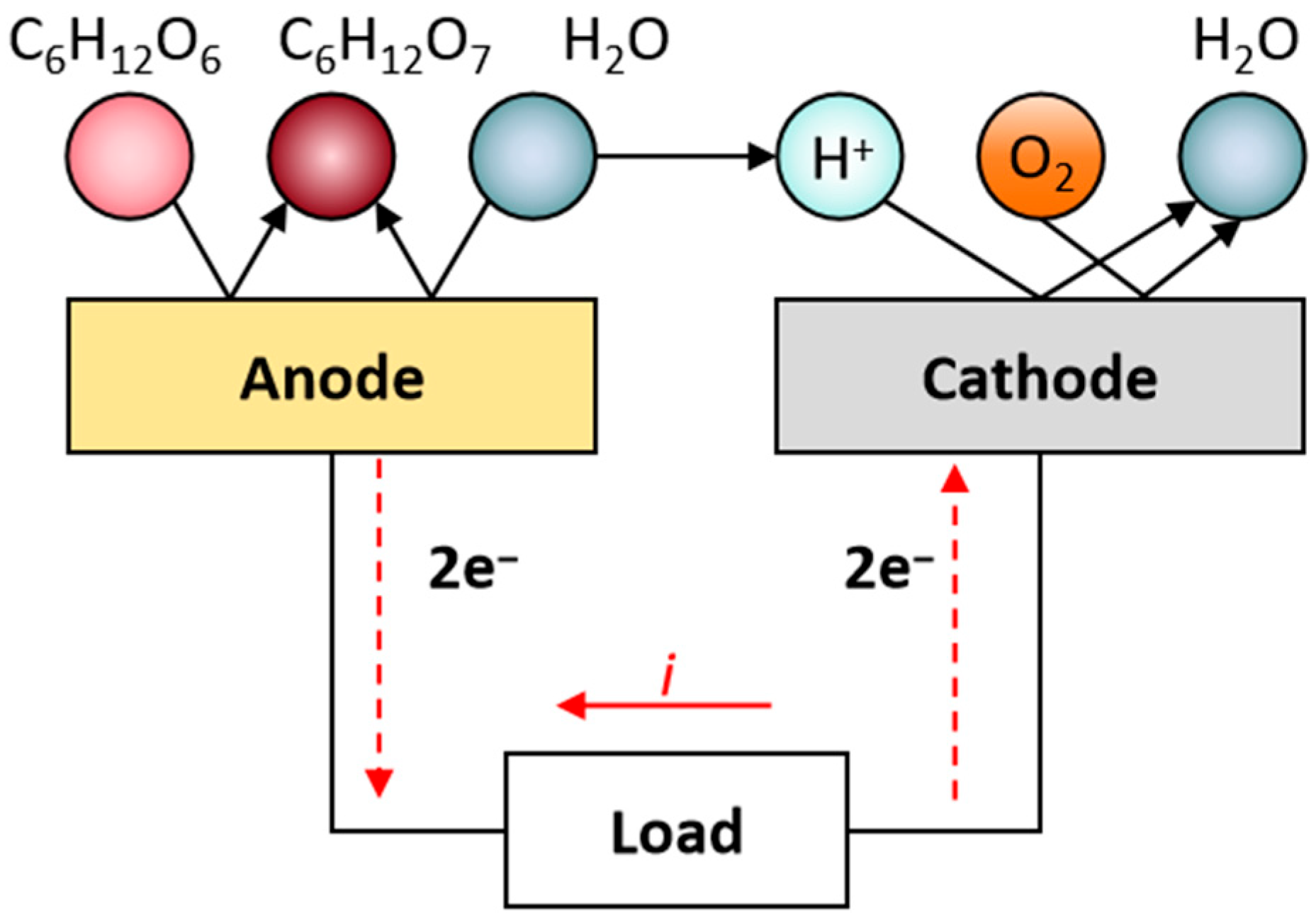 - Zebda, A.; Cosnier, S.; Alcaraz, J.-P.; Holzinger, M.; Le Goff, A.; Gondran, C.; Boucher, F.; Giroud, F.; Gorgy, K.; Lamraoui, H.; et al. Single glucose biofuel cells implanted in rats power electronic devices. Sci. Rep. 2013, 3, 1516. [Google Scholar] [CrossRef]
