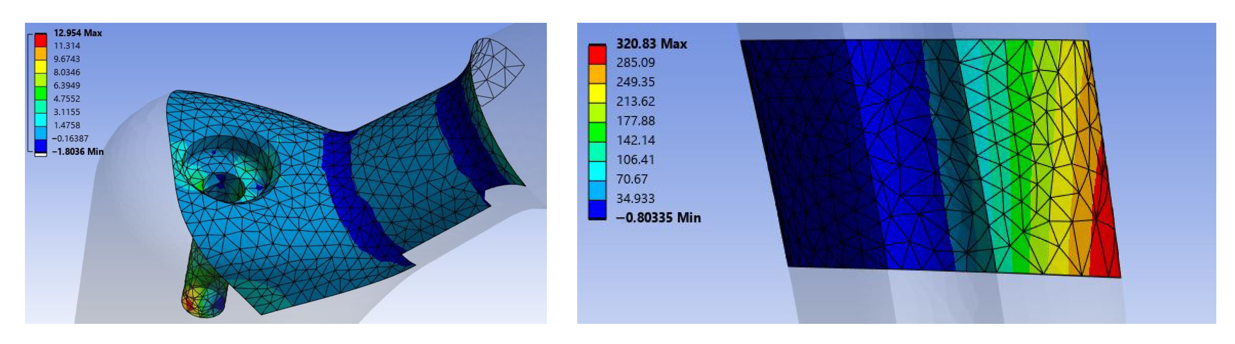 Figure 8, both Von Mises stress and Maximum Principal were computed for each region: all the cases were obtained with the same approach as that described in