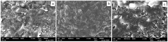 SEM micrographs of the smooth surfaces (a) 0% organoselenium (b) 0.5% organoselenium (c) 1% organoselenium samples (magnification ×1000).