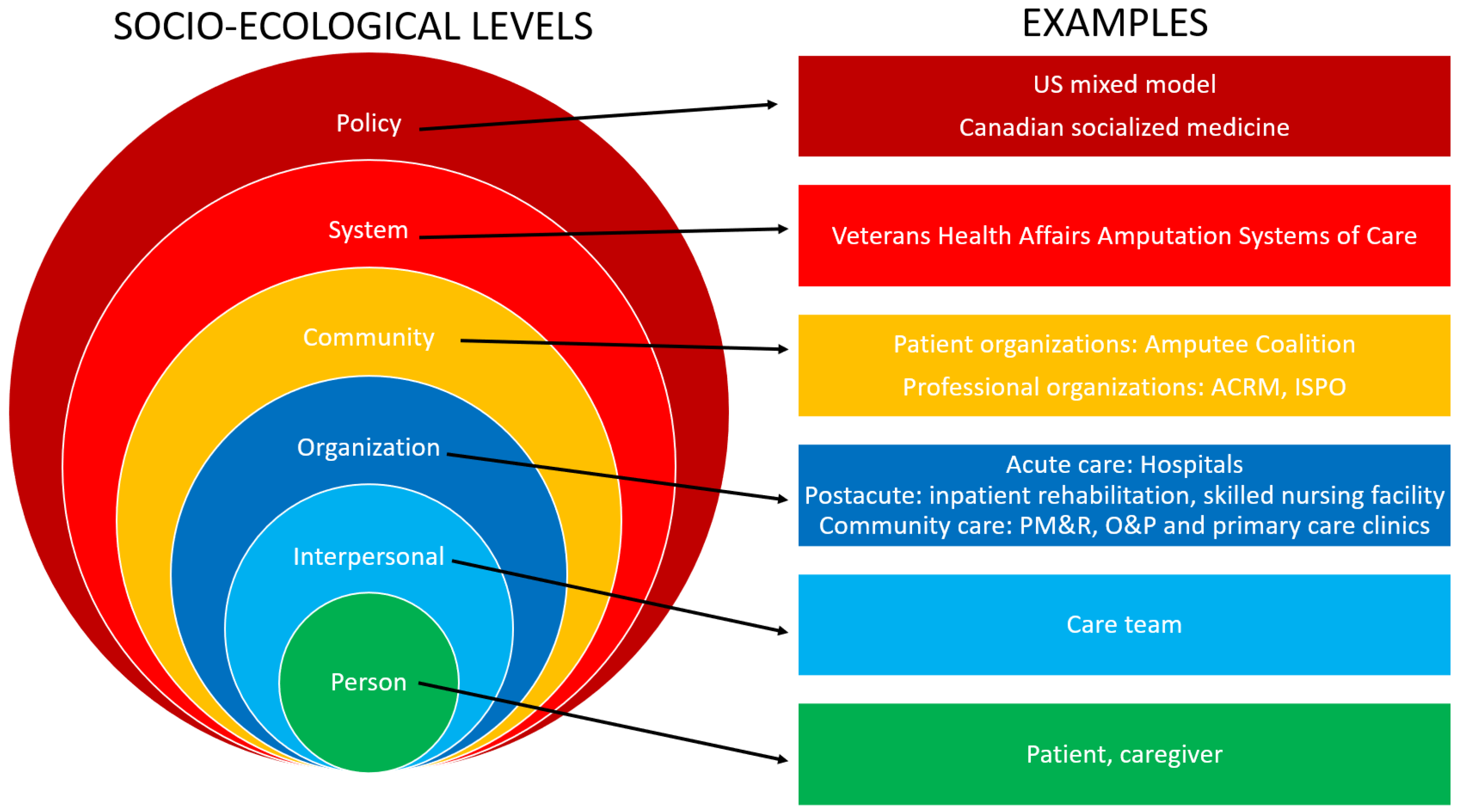 - Khetarpaul, V.; Kirby, J.P.; Geraghty, P.; Felder, J.; Grover, P. Socioecological model-based design and implementation principles of lower limb preservation programs as partners for limb-loss rehabilitation programs—A mini-review. Front. Rehabil. Sci. 2022, 3, 983432. [Google Scholar] [CrossRef] [PubMed]