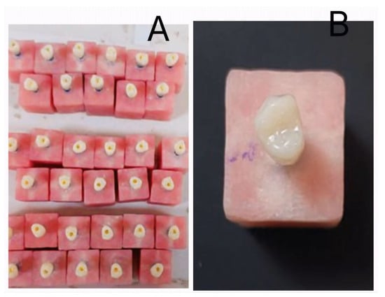 - Tyor, P.; Verma, A.; Meena, K.L.; Meena, R.; Choudhary, S.; Singh, A. Fracture resistance of monolithic translucent zirconia crown bonded with different self-adhesive resin cement: Influence of MDP-containing zirconia primer after aging. BMC Oral Health 2023, 23, 601. [Google Scholar] [CrossRef]