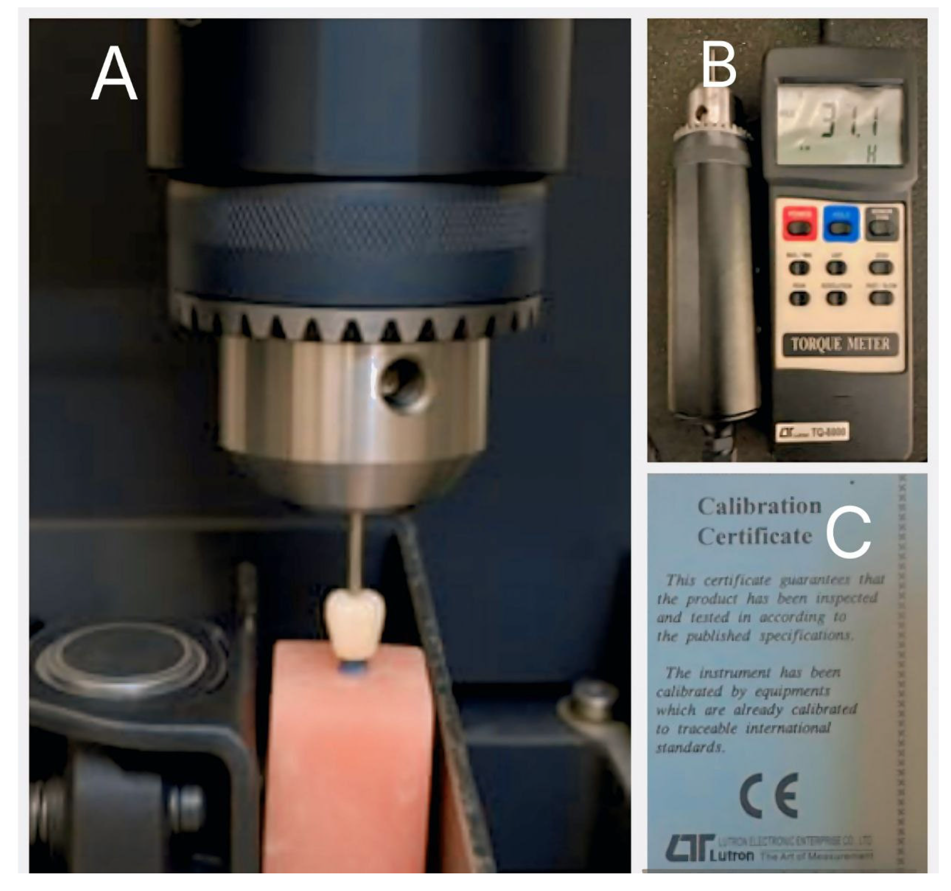 - Al-Zordk, W.; Elmisery, A.; Ghazy, M. Hybrid-abutment-restoration: Effect of material type on torque maintenance and fracture resistance after thermal aging. Int. J. Implant Dent. 2020, 6, 24. [Google Scholar] [CrossRef]