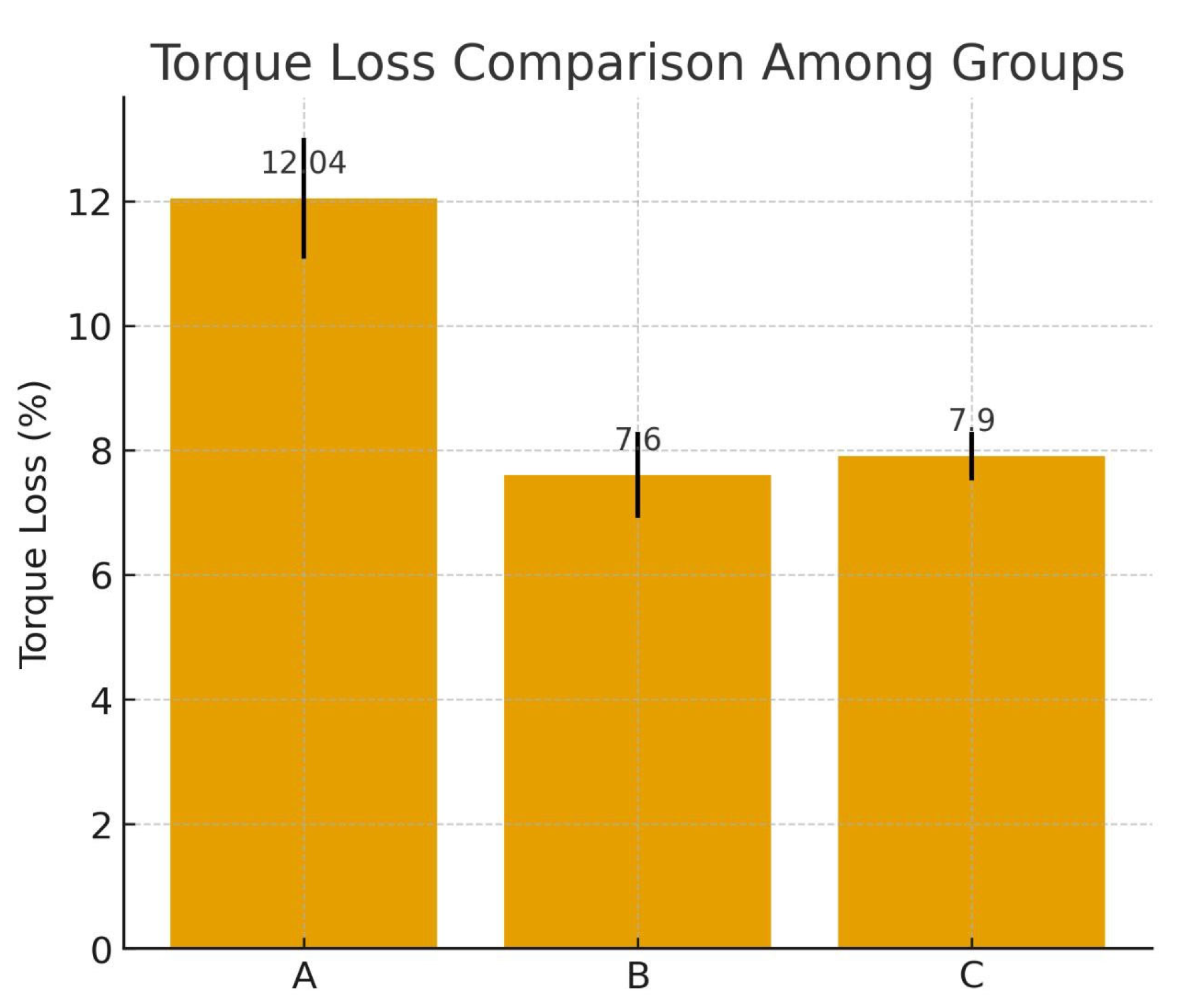 - In Group C, torque decreased from 31.5 Ncm to 28.9 Ncm.