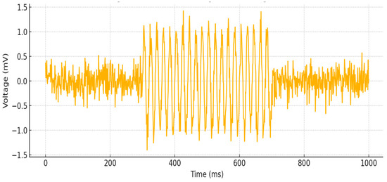 A single-channel EMG sensor board is employed to detect and quantify muscle activity. The compact printed circuit board (PCB) is equipped with three surface electrodes affixed to the residual muscles of the user. The EMG sensor seamlessly interfaces with the Arduino Nano, streamlining the integration process. Upon muscle activation, the internal amplification system within the sensor board enhances the detected electrical signals The EMG signals are presented in Figure 10 and Figure 11. These signals are then fed into the microcontroller’s analog-to-digital converter for preprocessing and precise analysis.