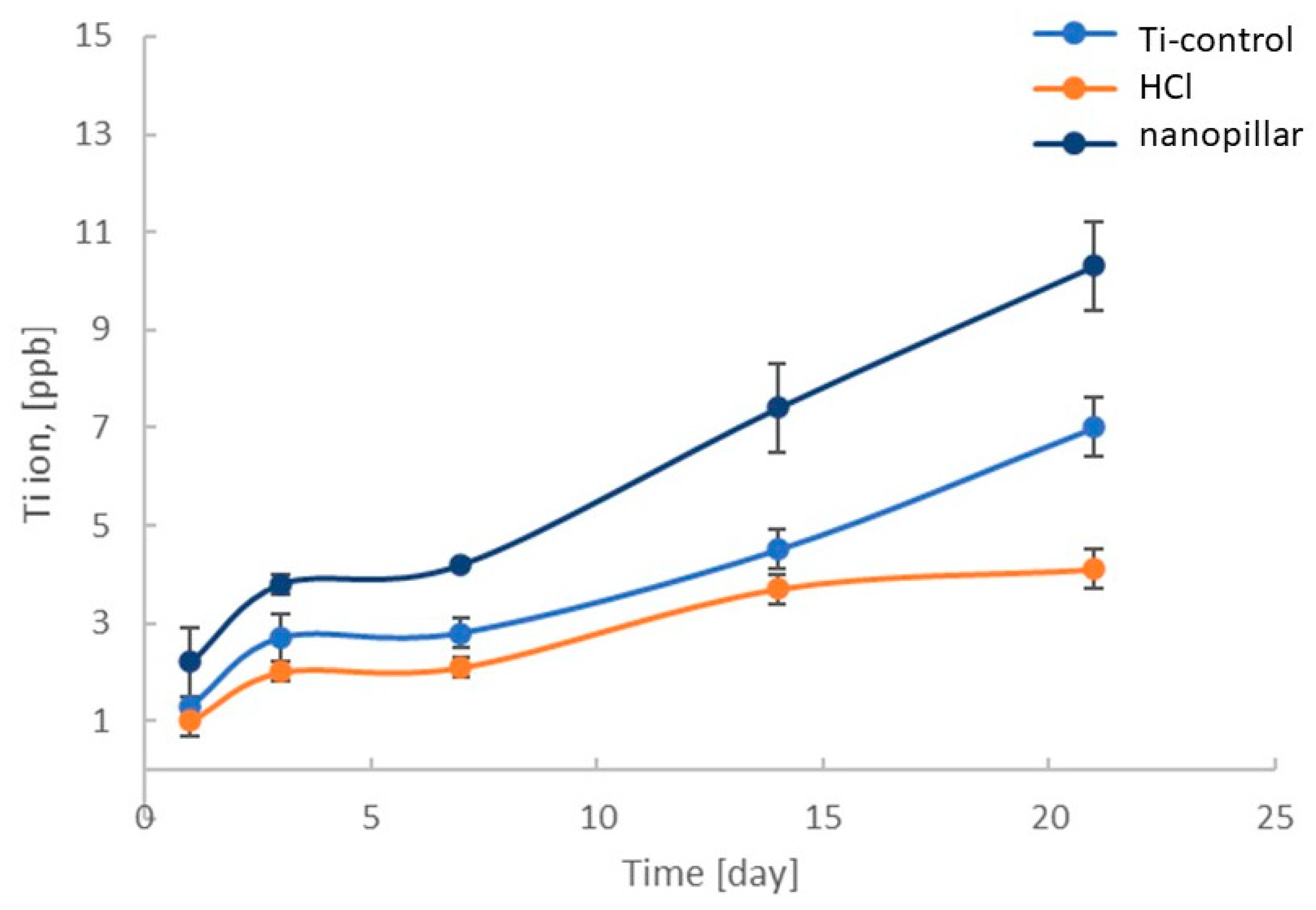 - Arregui, M.; Latour, F.; Gil, F.J.; Pérez, R.A.; Giner-Tarrida, L.; Delgado, L.M. Ion Release from Dental Implants, Prosthetic Abutments and Crowns under Physiological and Acidic Conditions. Coatings 2021, 11, 98. [Google Scholar] [CrossRef]